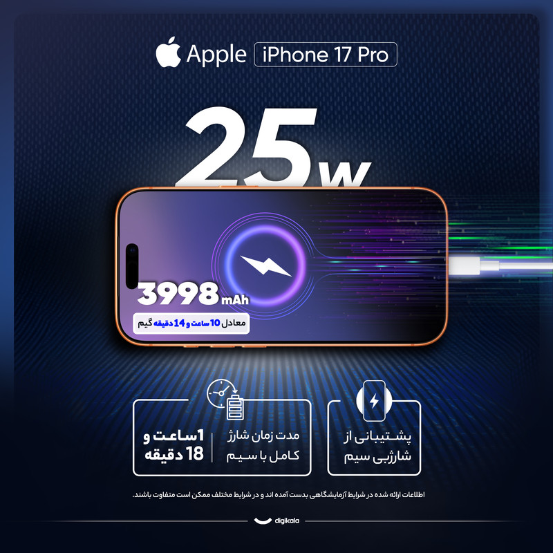 گوشی موبایل اپل مدل iPhone 17 Pro ZAA تک سیم کارت + eSim ظرفیت 256 گیگابایت و رم 12 گیگابایت - نات اکتیو