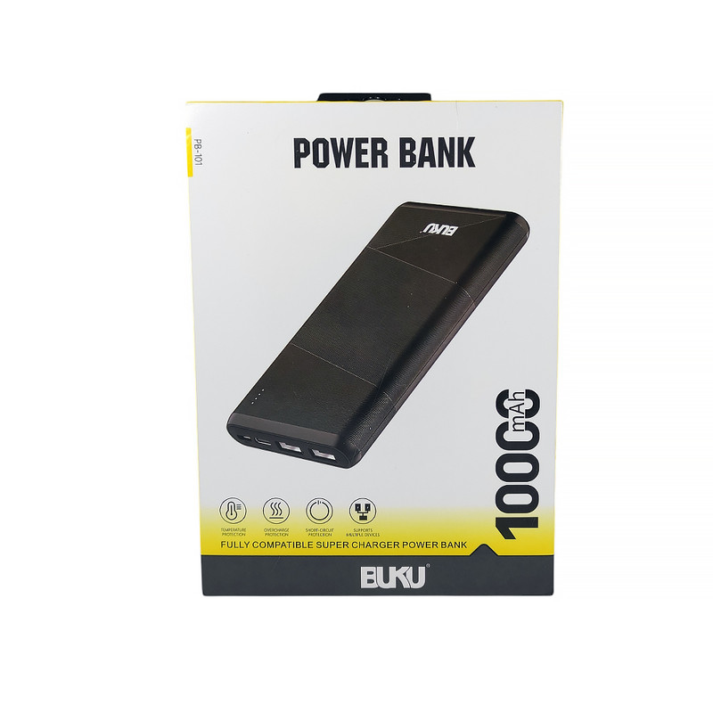 مدل: PB-101 ظرفیت: 10000mAh رنگ: سیاه/سفید ورودی Type-C: 5V/2.4A ورودی Micro: 5V/2.4A خروجی USB1: 5V/2.4A خروجی USB2: 5V/2.4A