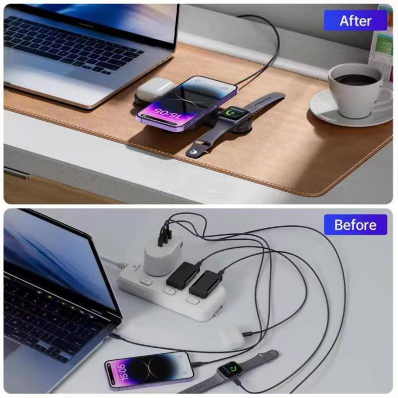 بودی از تولید کنندگان محصولات جانبی دیجیتال در سراسر جهان می باشد . با توجه به افزایش روز افزون افراد به کالاهای دیجیتال ، این برند گامی مؤثر در عرضه این مدل محصولات برداشته و با کیفیت هر چه تمام تر در جهت رشد و توسعه برنامه های خود برای تولید لوازم جانبی دیجیتال حرکت می کند . شارژر بی سیم سه کاره مغناطیسی تاشو Budi مدل WL4500B یکی از محصولات الکترونیکی این شرکت می باشد . این شارژر بی سیم دارای طراحی مدرن و مینیمالیستی است که به طور یکپارچه با هر فضایی ترکیب می شود. اندازه جمع و جورش آن را برای استفاده در خانه و محل کار ایده آل می کند . با طراحی تاشو ، این شارژر با نیازهای شما سازگار می شود و راه حلی فشرده برای شارژ چندین دستگاه به طور همزمان ارائه می دهد. ویژگی مغناطیسی اتصال ایمن را برای دستگاه های شما تضمین می کند و ثبات را در هنگام شارژ افزایش می دهد. با خروجی شارژ 15 واتی، این شارژر بی سیم سه کاره سرعت شارژ سریع را برای دستگاه های سازگار شما ارائه می دهد. با زمان های طولانی شارژ خداحافظی کنید و از راحتی شارژ سریع برق لذت ببرید. این شارژر برای قرار دادن دستگاه های مختلف به طور همزمان طراحی شده است که شامل نقاط شارژ اختصاصی برای تلفن هوشمند، ساعت هوشمند و هدفون های بی سیم شما است که آن را به یک راه حل شارژ همه کاره برای ملزومات فنی روزمره شما تبدیل می کند. این شارژر دارای مکانیزم مغناطیسی قوی است که دستگاه های شما را هنگام شارژ به طور ایمن در جای خود نگه می دارد. اتصال پایدار را تضمین می کند و از لغزش های تصادفی یا ناهماهنگی جلوگیری می کند.