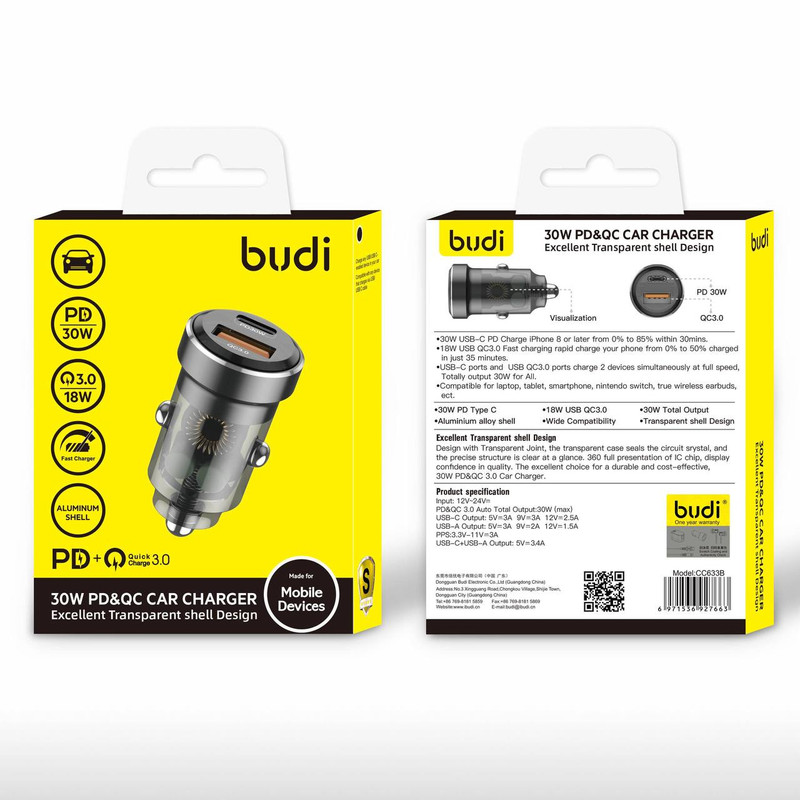 در مواقع ضروری که نیاز به شارژ گوشی موبایل داریم ، به خصوص داخل خودرو ، استفاده از شارژر فندکی با توان بالا و مناسب کمک به سزایی در حل شارژ گوشی موبایلمان می کند . برند بودی از برند های معتبر در تولید لوازم جانبی از جمله شارژر فندکی بودی مدل CC633B می باشد . این شارژر فندکی توان 30 وات را دارا می باشد و می تواند هر دستگاه سازگار را در عرض 30 دقیقه پس از استفاده شارژ سریع کند. طراحی شفاف یک ویژگی جالب است که کاربران را قادر می سازد تا داخل پوسته شارژر را ببینند . شارژر فندکی بودی مدل CC633B از 2 پورت USB-C PD و USB QC3.0 تشکیل شده است ، بنابراین می توان 2 دستگاه را به طور همزمان شارژ کرد . از این شارژر می توان برای شارژ لپ تاپ، هدفون بی سیم، تبلت، گوشی موبایل استفاده کرد .